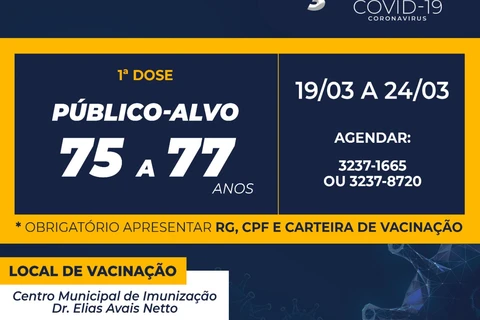 De acordo com a programação divulgada pela secretaria, a vacinação para esse público acontecerá até a próxima quarta-feira (24). Depois disso serão vacinadas as pessoas de uma nova faixa de idade.