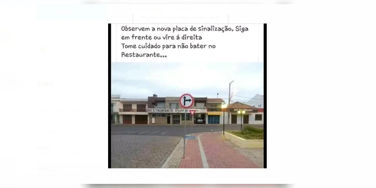 Como se pode perceber pela foto, a sinalização errada apontava que os motoristas poderiam virar à direita, bem como seguirem em frente na região. Porém, como essa possibilidade não existia, os leitores brincaram que a placa direcionava os usuários até o restaurante que fica bem em frente onde ela foi inicialmente colocada.