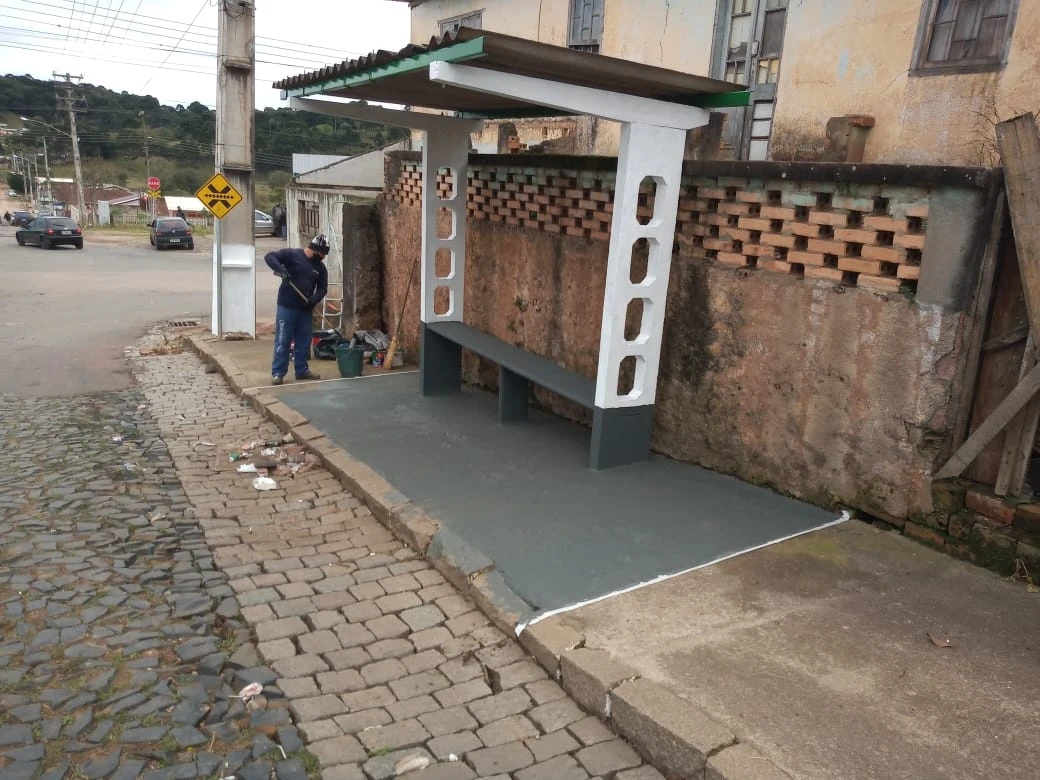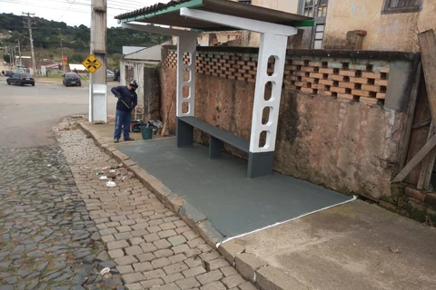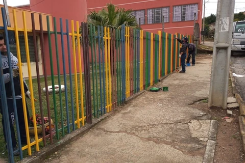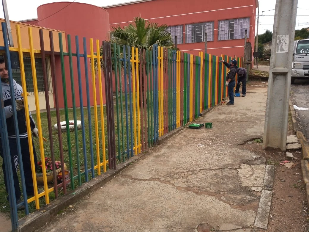 Pinturas – Equipes da Secretaria continuaram com as pinturas nos pontos de ônibus da cidade e no Centro Municipal de Educação Infantil Professora Cecília de Freitas Barbosa, no Jardim Benevenuto Antunes Dalcol.