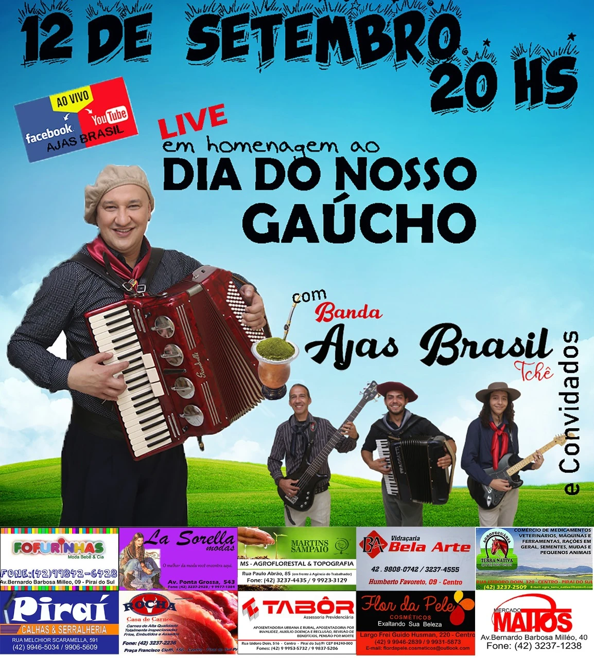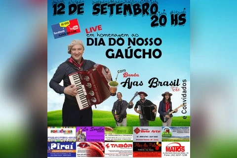 EventoA homenagem ao também apaixonado músico, que recebeu o carinhoso nome de "Ao Dia do Nosso Gaúcho", acontece às 20 horas de domingo. O evento é promovido pelo filho de Alcimar, Matheus Karpinski, em conjunto com a Banda AJAS Brasil.