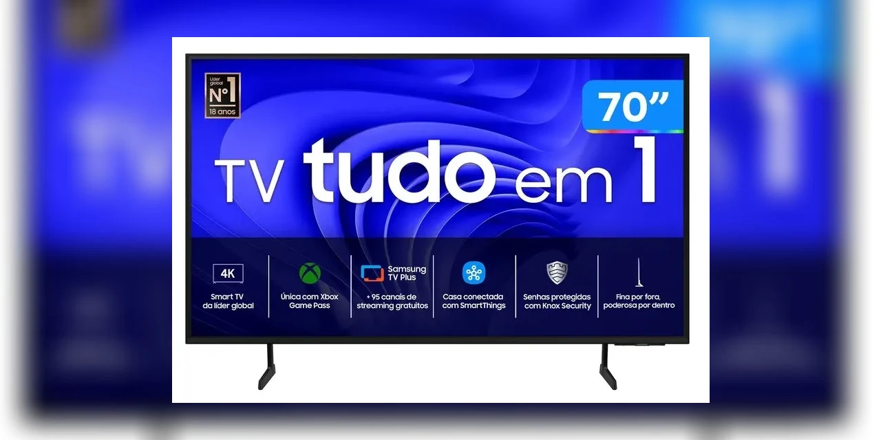 Produto - A gerência da loja piraiense explica que o produto em oferta é a Smart TV 70 polegadas 4k Led da Samsung, com controle remoto com controle de voz.
