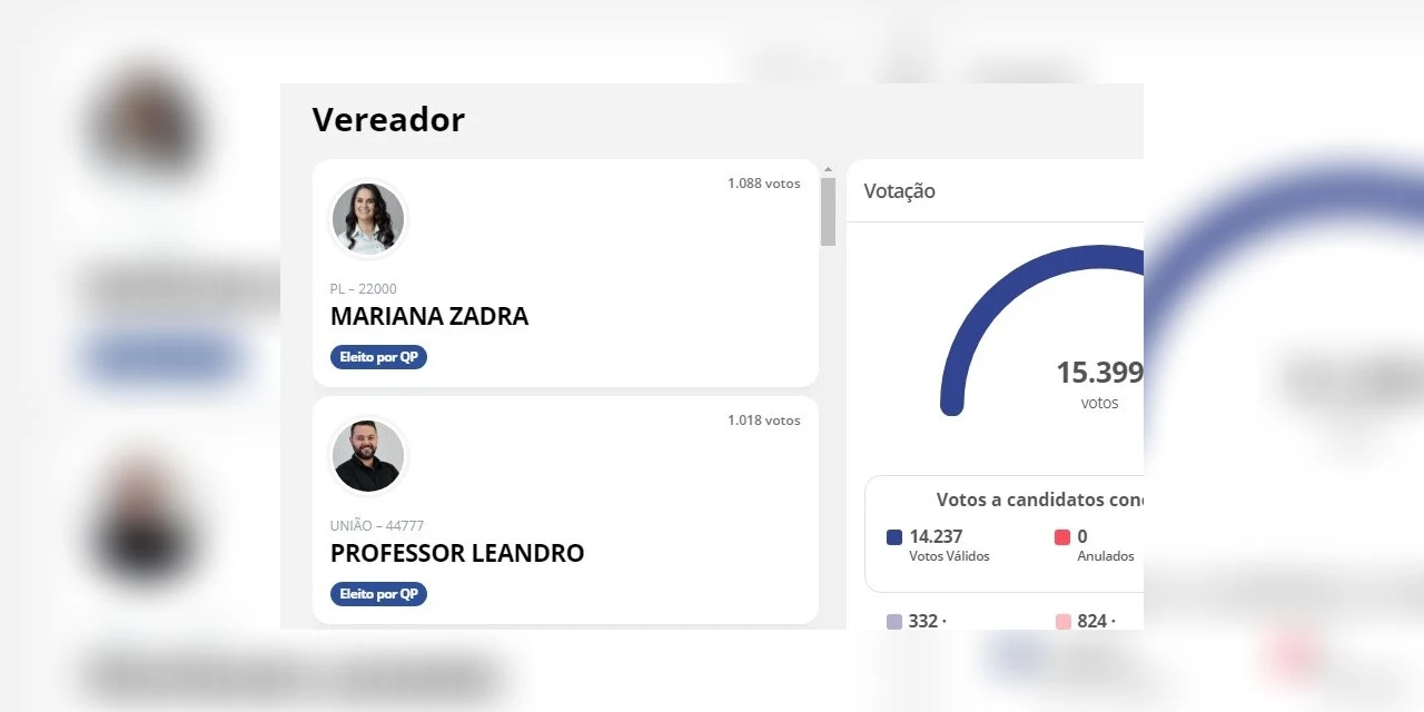 A candidata mais votada, com 1.088 votos, foi Mariana Zadra (PL), atual presidente do Legislativo, seguida pelo Professor Leandro, com 1.018.