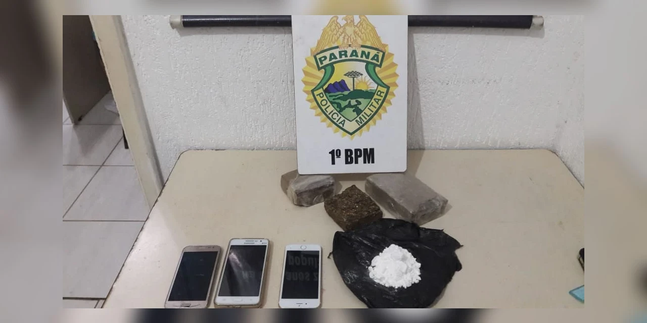 Os adolescentes, de 16 e 17 anos de idade, foram flagrados no fundo de um ônibus que fazia o transporte de passageiros de Castro para Piraí do Sul no final da tarde de hoje. Com a dupla foi encontrada uma bolsa com dois tabletes de maconha, somando 700 gramas da droga, além de uma sacola plástica com 50 gramas de cocaína.