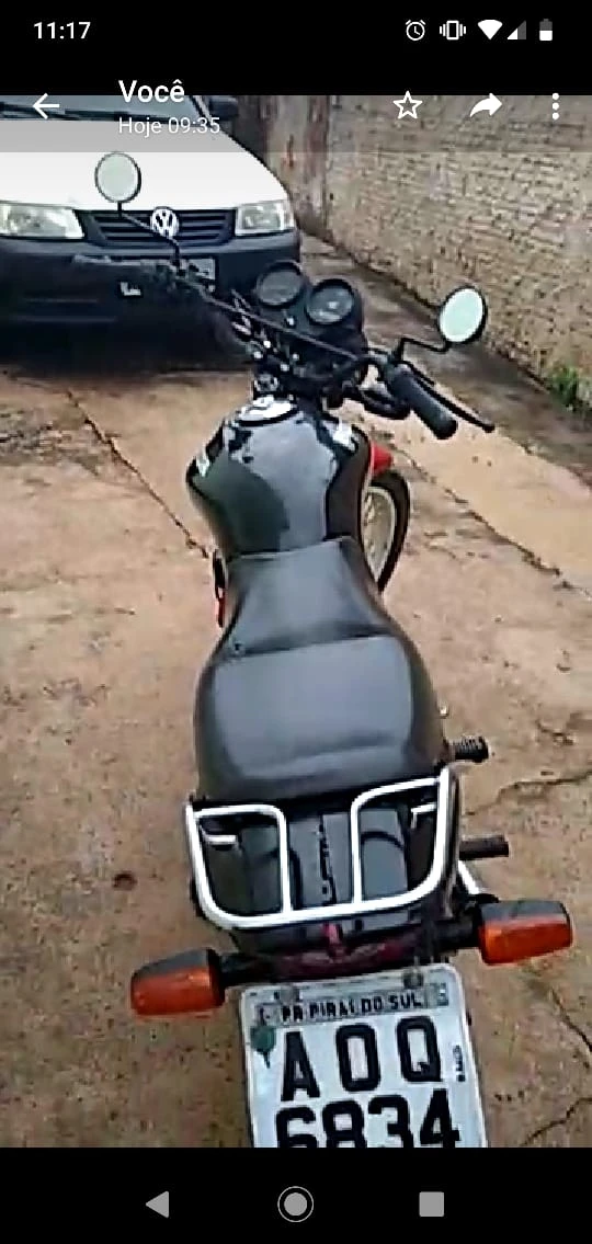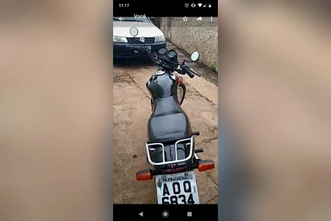 A moto levada é uma Honda CG 125 preta, de placas AOQ-6834, fabricada no ano de 2007.