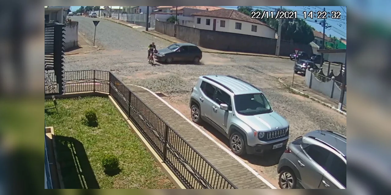 DA REDAÇÃO - Imagens do circuito de segurança de uma empresa localizada no cruzamento das ruas Alfredo Ribeiro de Souza e Getúlio Vargas, na área central de Piraí do Sul, captaram o exato momento em que uma ciclista foi atropelada pelo veículo que seguiu em direção a Avenida Ponta Grossa sem prestar socorro à vitima.