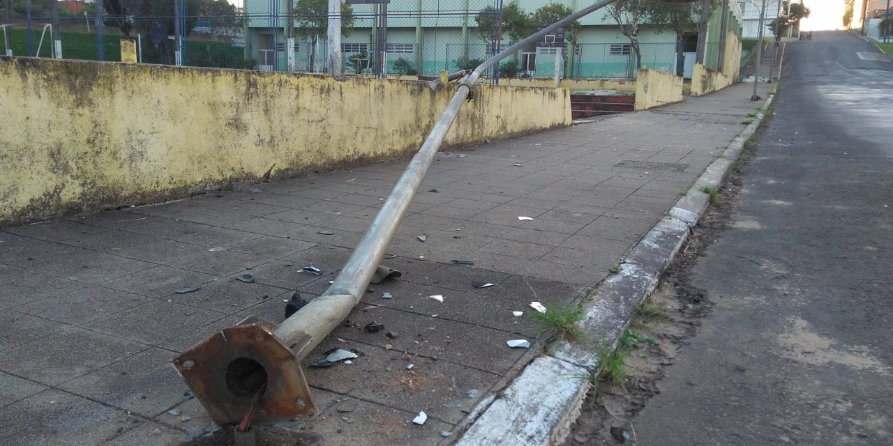 O choque contra um poste de iluminação pública aconteceu na Travessa Brasílio Araújo, perto do Ginásio de Esportes Samuel Milléo, resultando em danos materiais no veículo e também no patrimônio público. Ninguém ficou ferido, de acordo com a PM.