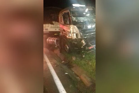 Devido ao impacto, o motorista perdeu controle do caminhão e bateu de frente com o ônibus de Jaguariaíva que vinha na direção contrária.