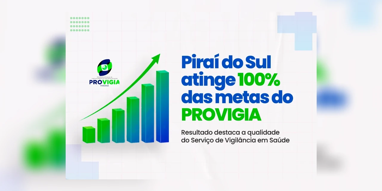 COM ASSESSORIAS - Piraí do Sul alcançou, em 2025, 100% das metas estabelecidas pelo Programa de Qualificação da Vigilância em Saúde (Provigia), iniciativa do Governo do Paraná que avalia o desempenho dos municípios na prevenção, monitoramento e controle de doenças. O resultado evidencia o fortalecimento das ações em saúde desenvolvidas pela Prefeitura Municipal, por meio da Secretaria de Saúde.