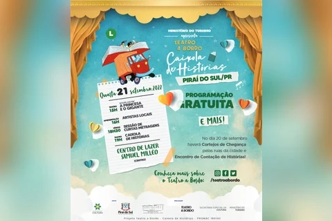 A programação, toda gratuita, começa às 15 horas com a apresentação solene da peça "A Princesa e o Gigante", seguindo às 18h30 com sessão de curtas metragens e, às 19 horas, fechando com o espetáculo "Caixola de Histórias".