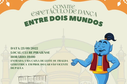 Encerrando a semana cultural, na sexta-feira (23) será a vez dos artistas locais subirem ao palco do Clube Piraiense para o espetáculo de dança Entre dois Mundos.