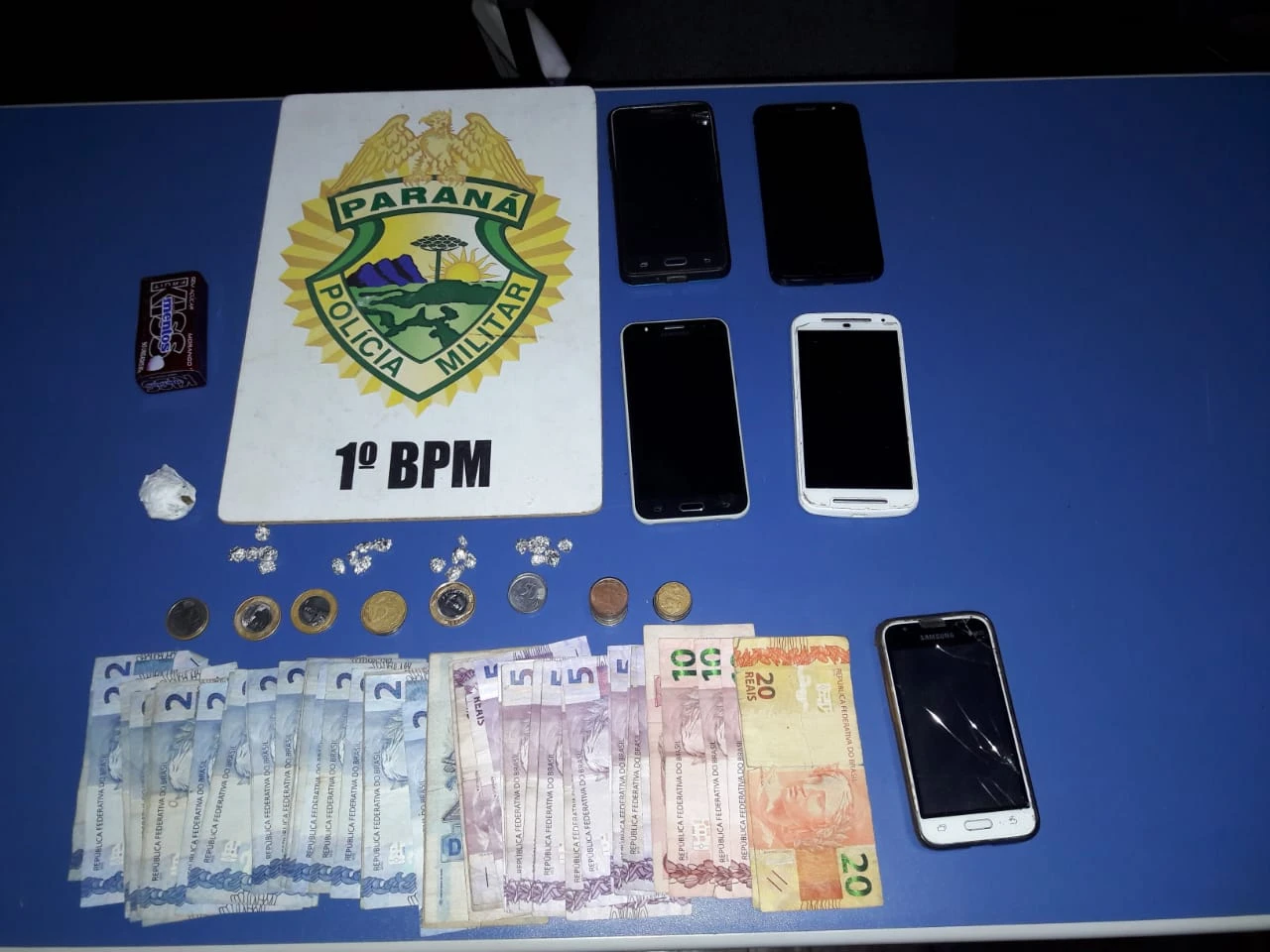 Na residência localizada na Colina Santa Marcelina foram encontradas 20 pedras de crack e uma porção de maconha, além de dinheiro em notas trocadas, normalmente usadas na comercialização de substâncias entorpecentes. Diversos equipamentos eletrônicos sem procedência também foram apreendidos no interior do imóvel.