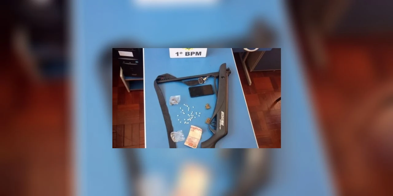 No interior da residência do rapaz foi encontrada uma espingarda de pressão sem nota fiscal, objeto que também foi apreendido junto com as drogas.