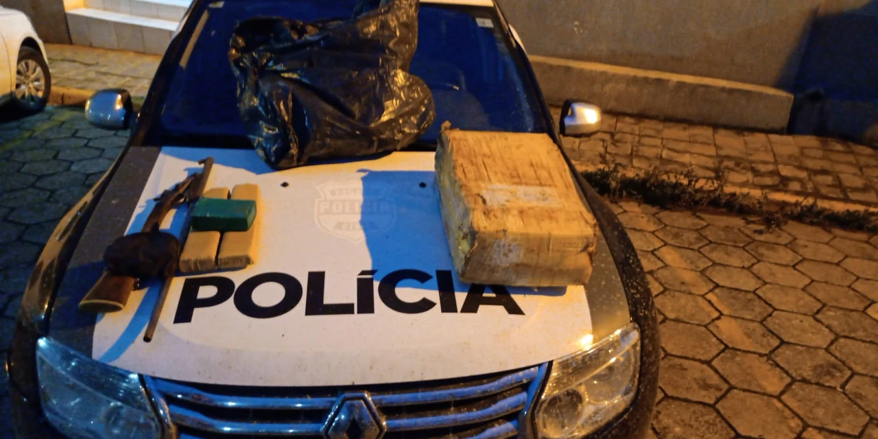 Com ele foram encontrados aproximadamente 25 quilos de maconha e uma espingarda calibre 28. A prisão aconteceu em uma propriedade rural do bairro Pedreira.