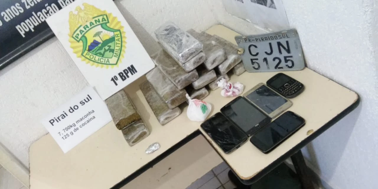 REDAÇÃO/Correio dos Campos – Uma ação bem sucedida da Polícia Militar de Piraí do Sul, realizada na tarde de ontem, terminou com a apreensão de 7,7 quilos de maconha e 125 gramas de cocaína, além da detenção de dois suspeitos de envolvimento com o tráfico de drogas na cidade.