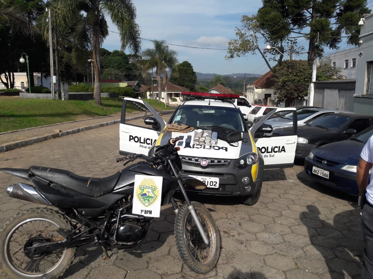 Durante a abordagem, o adolescente acabou informando que adquiriu a droga do rapaz que estava com ele. No aparelho celular do jovem foram encontradas mensagens em que ele tentava vender a motocicleta que estava com a dupla e que tinha sido furtada em Jaguariaíva há 15 dias.