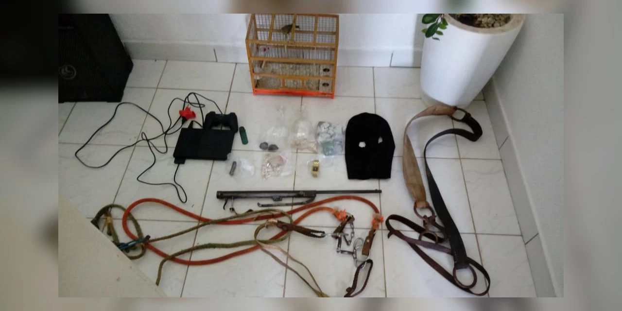 No endereço autorizado pela justiça para a realização das buscas foram encontrados cerca de 250 gramas de crack e 170 gramas de maconha, além de um tubo com 293 gramas de pólvora, um videogame, um relógio, dois equipamentos de montaria e um pássaro silvestre preso numa gaiola.