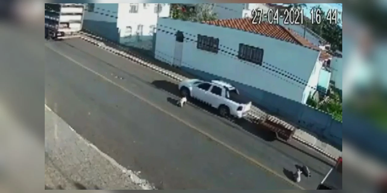Nas imagens, é possível ver que a porta do caminhão abre e então os animais caem no asfalto.