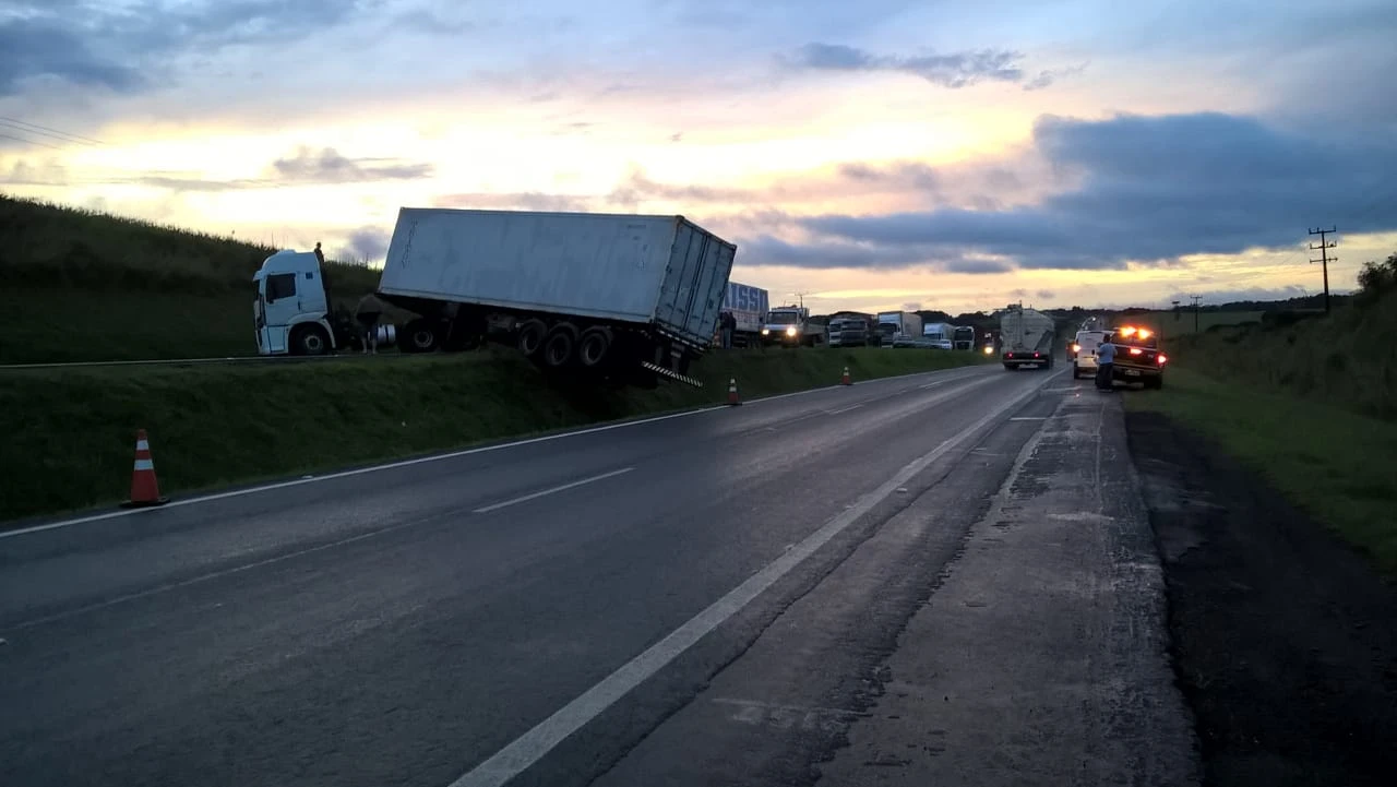 REDAÇÃO/Correio dos Campos - A rodovia PR 151 se encontra interditada na manhã desta terça-feira (20) no sentido Castro a Piraí do Sul, na altura do quilômetro 276. De acordo com a concessionária Rodonorte, o bloqueio total de uma das pistas aconteceu devido ao acidente que envolveu um caminhão que deslizou e atravessou em um dos sentidos.