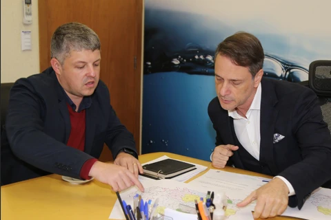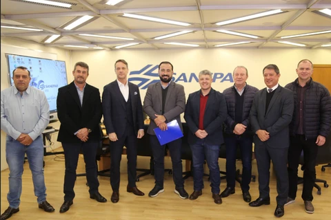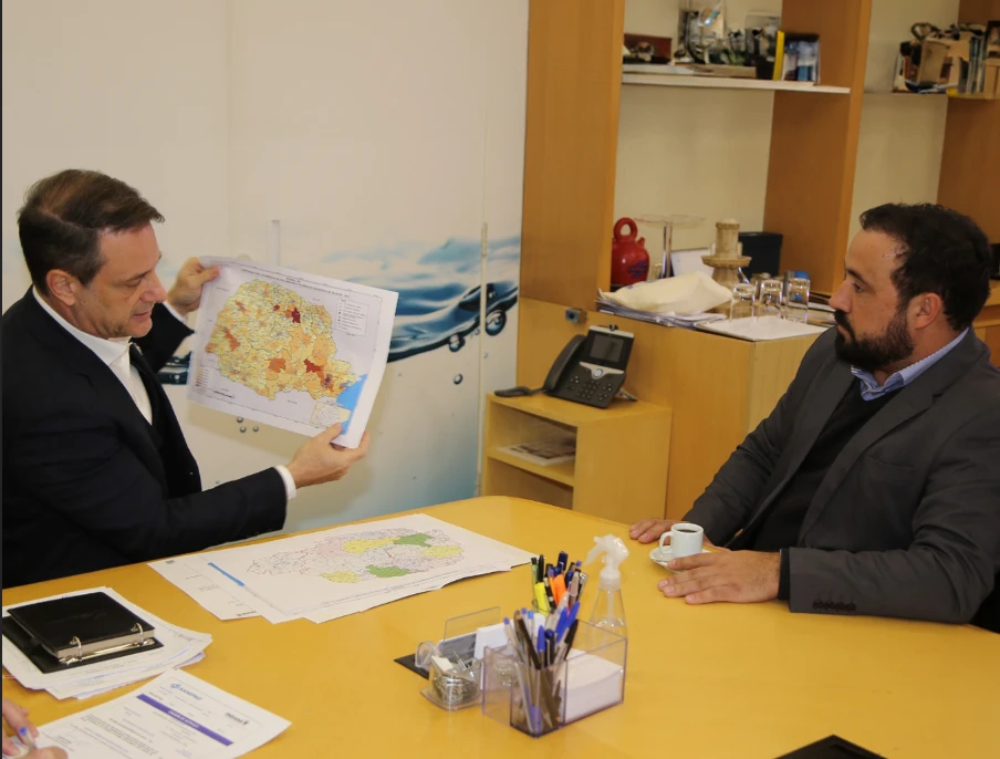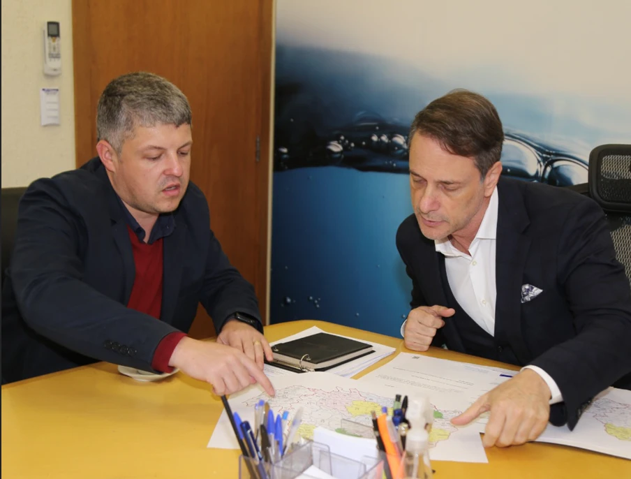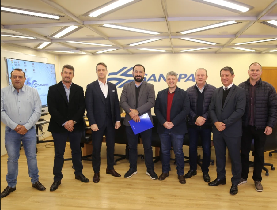 COM ASSESSORIAS - O prefeito Henrique Carneiro, acompanhado do vice-prefeito Wagner Zadra e dos secretários de Agropecuária e Abastecimento, Luciano Solek, e de Infraestrutura, Saulo Eurides da Silva, estiveram na capital do Estado com o representante da Sanepar, Elvis Alves, para celebrar aquele que deve ser um marco importante para o município. Durante o encontro, o prefeito e o presidente da Sanepar, Claudio Stabile, assinaram a ordem de serviço para a ampliação do abastecimento de água na cidade, através da implantação de um reservatório com capacidade de 500 m³, iniciativa que trará benefícios significativos para a comunidade local.