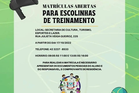 Informações - Esclarecimentos sobre as escolinhas podem ser obtidos pelo telefone (42) 3237-8533.