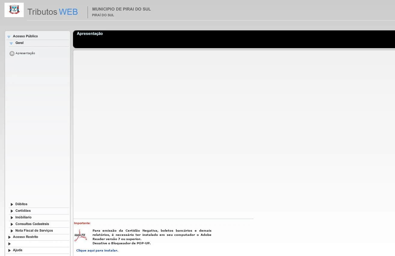 Pensando nisso, a administração municipal de Piraí do Sul, através da secretaria de Fazenda e do setor de Tributação, passou a disponibilizar desde a última sexta-feira, 9, o serviço denominado "Tributos Web", pelo qual os cidadãos piraienses passam a contar online com alguns serviços que até então só eram realizados diretamente no Paço Municipal.