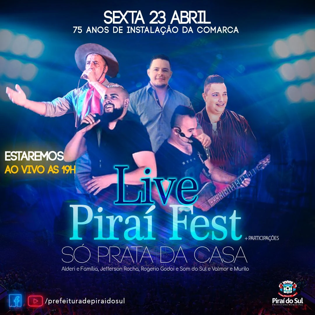 Por Pedro Dalcol Filho - A prefeitura de Piraí do Sul, através da Secretaria Municipal de Educação e Cultura, promove na próxima sexta-feira, dia 23, a partir das 19 horas, a live Piraí Fest, que será transmitida pelos canais da prefeitura através do Facebook e Youtube.