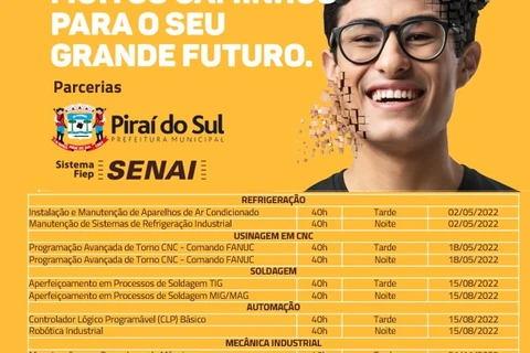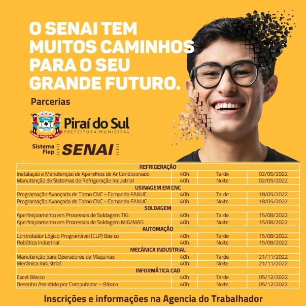 DA REDAÇÃO - Foram abertas nessa semana as vagas para os cursos de Usinagem CNC, Soldagem, Mecânica Industrial, Automação, Refrigeração e Informática CAD, através da parceria realizada entre o SENAI e o município.