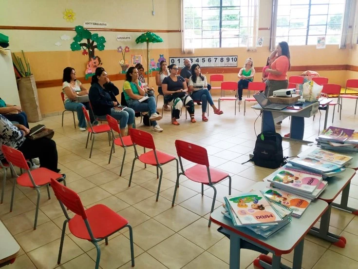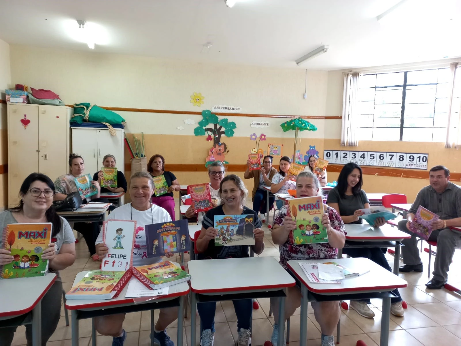 Na segunda-feira (30), ocorreu a implantação do Sistema Maxi de Ensino, ministrada pela Assessora Pedagógica Mayara Schneider, com a presença da equipe gestora das escolas (direção e pedagogos), para quem foi apresentado o sistema de ensino, os materiais e também algumas orientações de trabalho que na sequência serão estendidas aos professores da rede municipal de ensino.