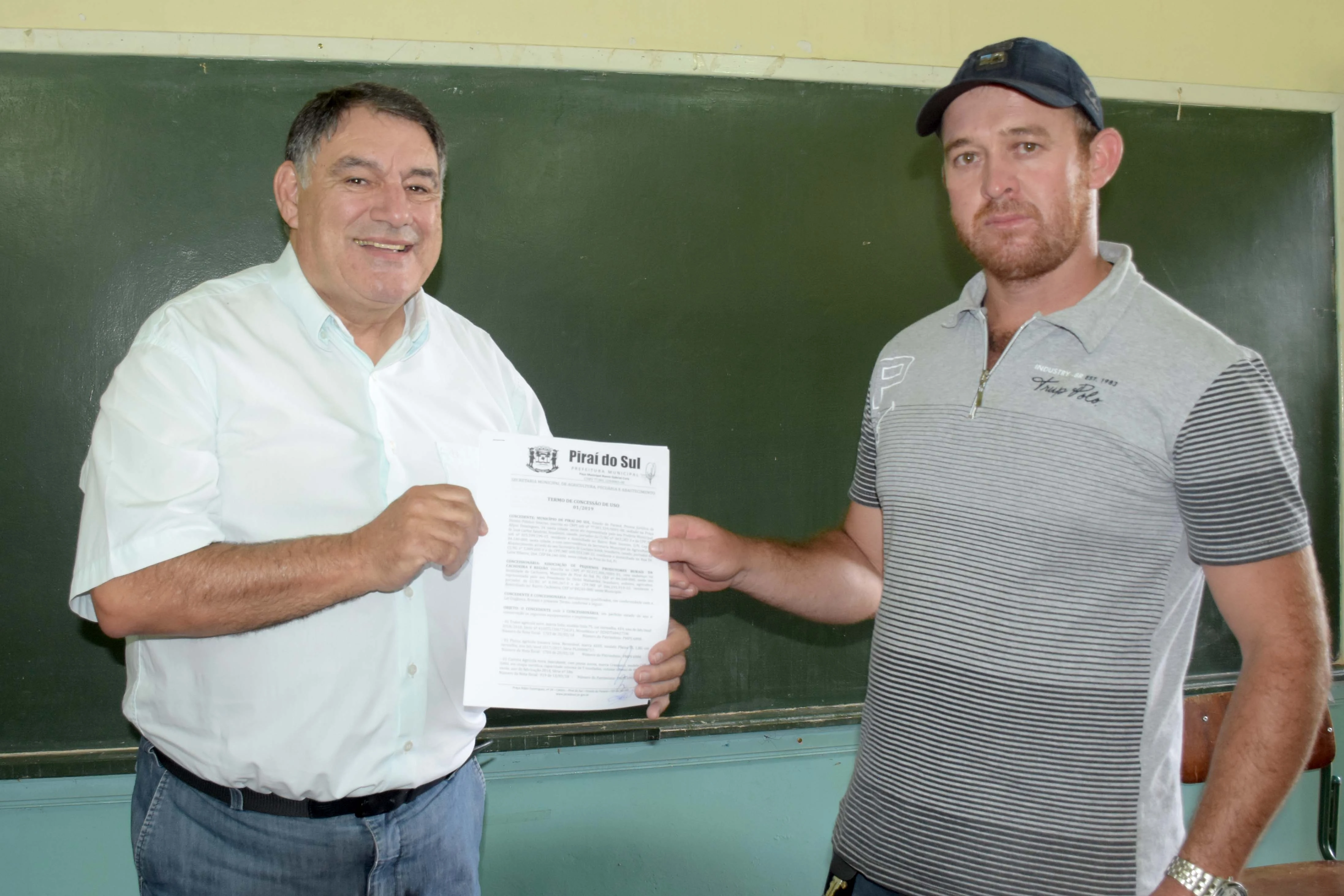 Toninho Anhaia/Piraí do Sul - A Prefeitura de Piraí do Sul entrega trator e implementos agrícolas para a Associação de Produtores do Bairro da Cachoeira e Região. A entidade é formada por mais de 40 famílias que atuam na produção de grãos, leite, suínos, entre outros. O termo de concessão de uso foi assinado pelo prefeito José Carlos Sandrini, o secretário interino da Secretaria de Agricultura e Abastecimento, Luciano Solek e o presidente da Associação Dirlei Mainardes.