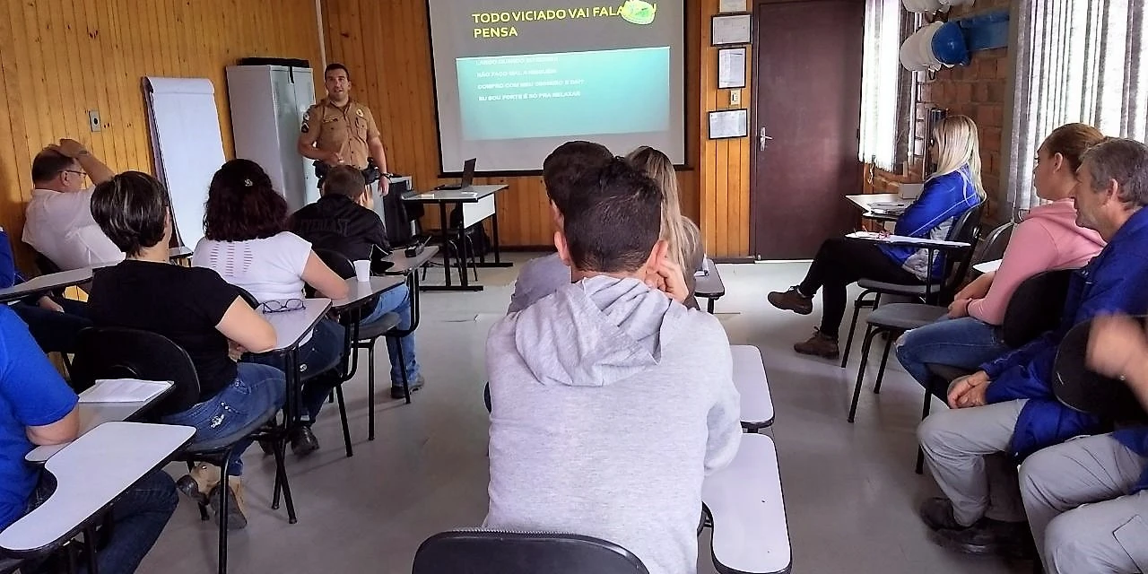 Durante a palestra proferida pelo Soldado Janeckzek foram apresentadas diversas informações sobre as drogas lícitas e ilícitas, além das consequências que o tráfico de entorpecentes causa para a sociedade.