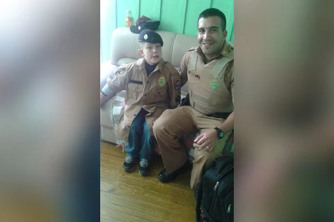Momento especial - Ao final do encontro, tomando conhecimento de que o filho do funcionário que recentemente perdeu a vida em um acidente de trabalho na empresa gostava da Polícia Militar, o policial seguiu até a residência do garoto, onde conversou com o menino sobre a instituição e emprestou vestimentas oficiais da corporação para que o momento fosse registrado.