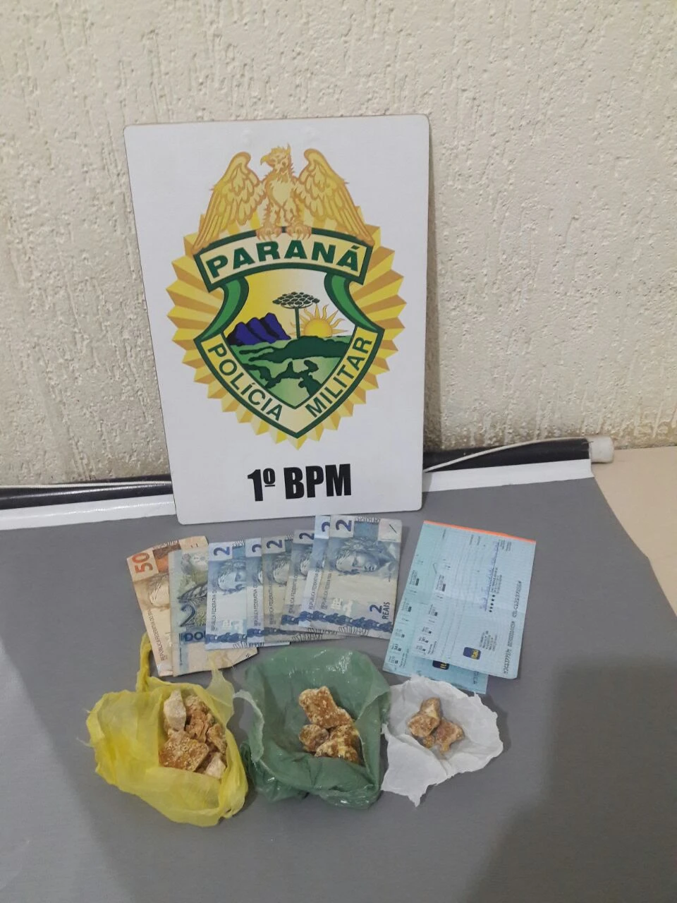 Depois de receber a informação que um veículo se deslocaria de Castro para Piraí do Sul com a finalidade de entregar drogas da região do bairro Jardim Primavera, a equipe policial do destacamento da PM da cidade realizou diligências na localidade e encontrou dois suspeitos em um Fiat Uno. Segundo os policiais, um terceiro elemento fugiu do local ao perceber a presença da PM.