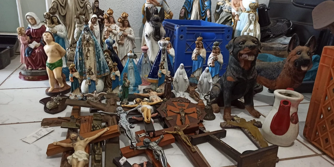 Entre os objetos, estavam 35 imagens de santos, 2 imagens de anjos, 27 quadros com imagens de santos, 14 crucifixos, inclusive de túmulos de cemitério, e itens religiosos que foram reconhecidos pelos responsáveis pelas igrejas.