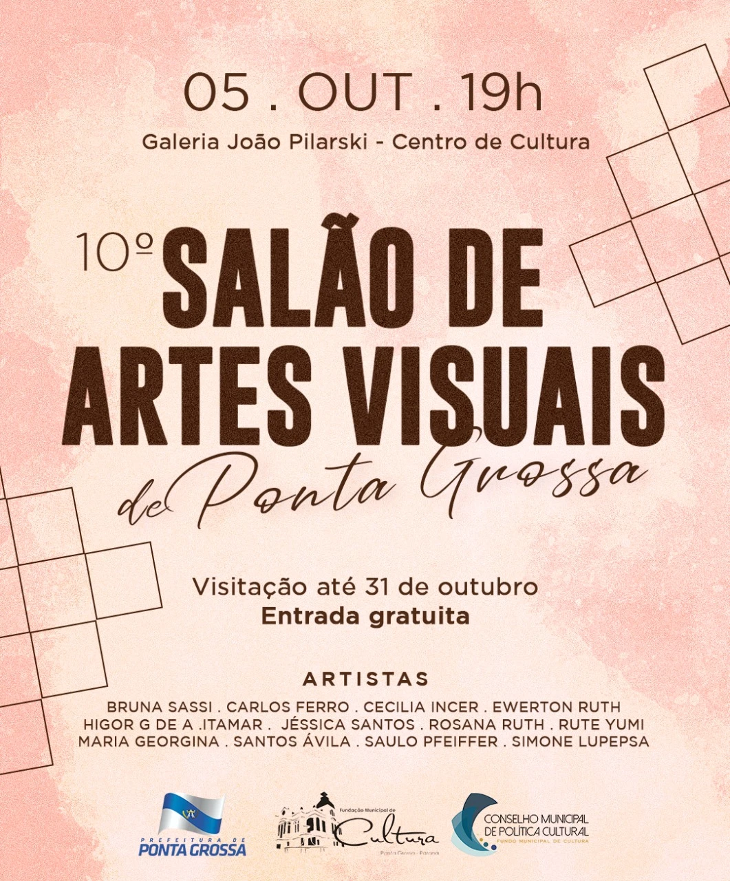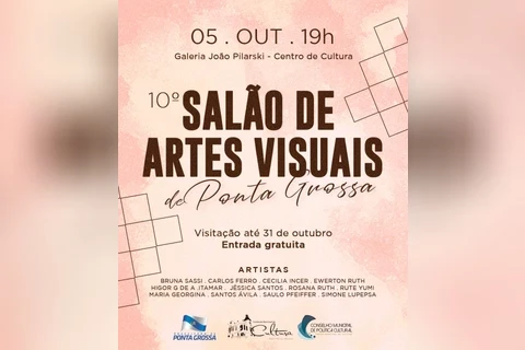 Luana Caroline Nascimento/Ponta Grossa - Abre para visitação neste sábado, 05 de outubro, a partir das 19h, o 10º Salão de Artes Visuais de Ponta Grossa, realizado pela Prefeitura, por meio da Fundação Municipal de Cultura, e pelo Conselho Municipal de Política Cultura. As obras foram escolhidas por um edital público com o tema patrimônio cultural (material e imaterial); costumes e fazeres; e inventário de referências culturais. Durante a vernissage de abertura serão divulgados os vencedores do Salão, que levam prêmios em dinheiro de até R$ 3 mil.
