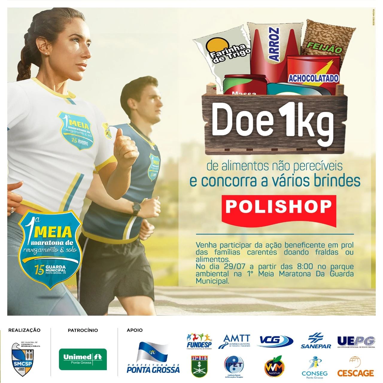 IMPRENSA/Ponta Grossa - A 1ª Meia Maratona da Guarda Municipal (GM) será neste domingo (29) e a secretaria municipal de Cidadania e Segurança Pública (SMCSP) convida a população para prestigiar o evento e ainda participar de uma ação beneficente. Alimentos não perecíveis, fraldas e outras doações poderão ser levadas durante a comemoração dos 15 anos da GM. Os materiais arrecadados serão entregues pelo Centro de Ensino Superior dos Campos Gerais (Cescage) – um dos parceiros do evento – à uma instituição social. Quem participar da ação ainda concorrerá a prêmios durante a festa.
