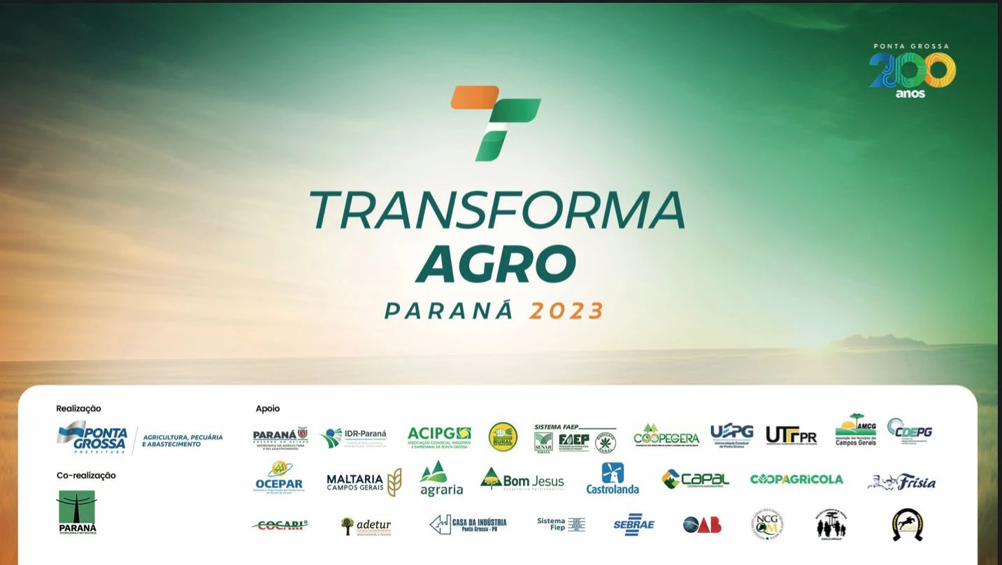 COM ASSESSORIAS - A Prefeitura de Ponta Grossa, em parceria com o Instituto Paraná Tecnologia e Metrologia e o apoio de diversas instituições do Agro, promove de 19 a 24 de setembro, a 1ª Transforma Agro Paraná, no Centro de Eventos e Centro Agropecuário Municipal de Ponta Grossa.