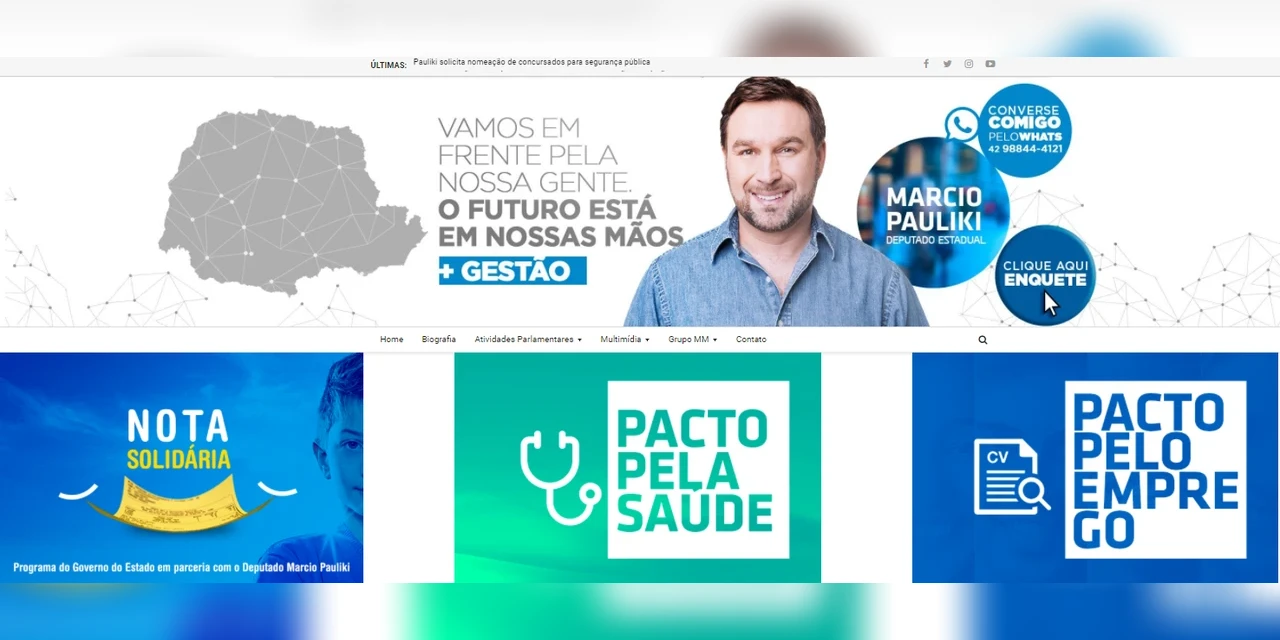 SITE NOVO - Além da enquete, o site do deputado Marcio Pauliki está com novo layout. Mais moderno e visando dar ainda mais transparência aos atos, projetos, requerimentos e destinação de recursos, o novo portal tornou-se mais didático e inovador. O endereço do site é