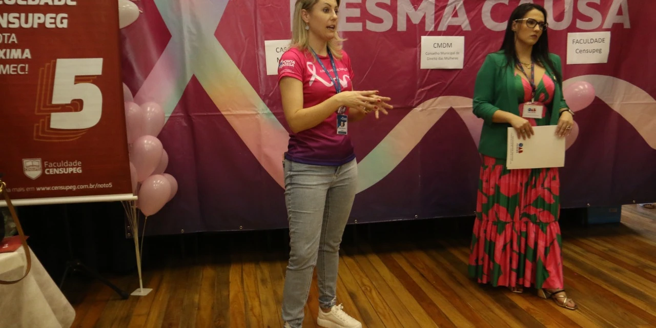 Alunas do curso Tecnólogo em Gestão de Recursos Humanos da Faculdade Censupeg estiveram com o Projeto PIPA: Projeto Inovador Profissional de Aprendizagem. O Departamento Penitenciário, do Governo do Estado, também é parceiro da ação na doação de camisetas que foram sorteadas para as mulheres presentes no evento.