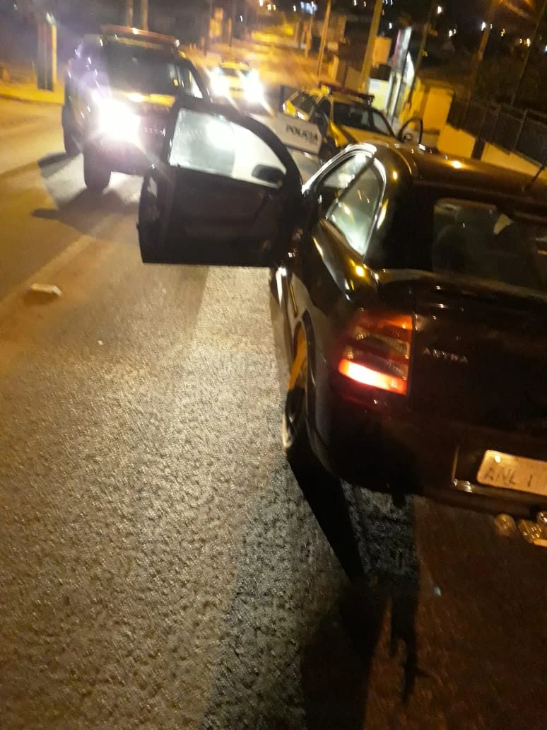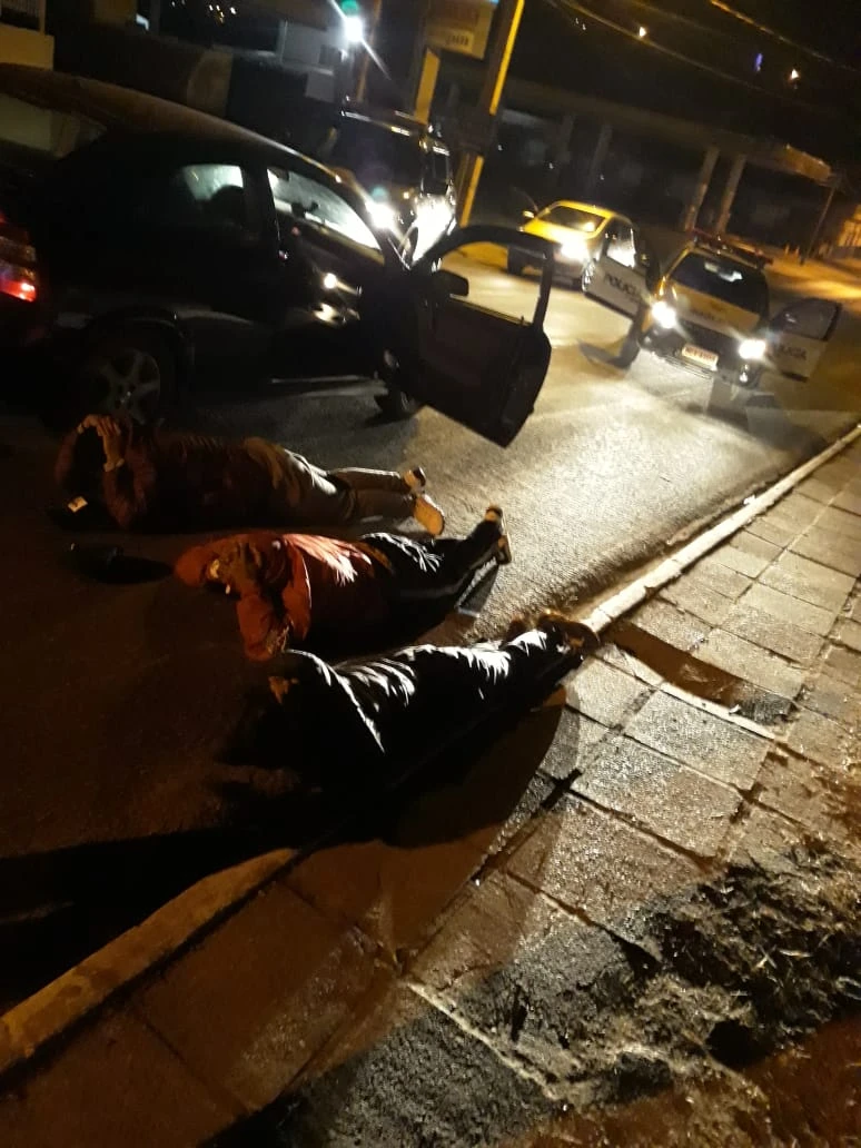 O Astra foi abordado quando passava pela Rua Olegário de Macedo, na região central. Com os cinco envolvidos foram encontradas as duas armas usadas no assalto, um revólver calibre 32 e outro calibre 38, além dos objetos roubados um pouco antes em Ponta Grossa.