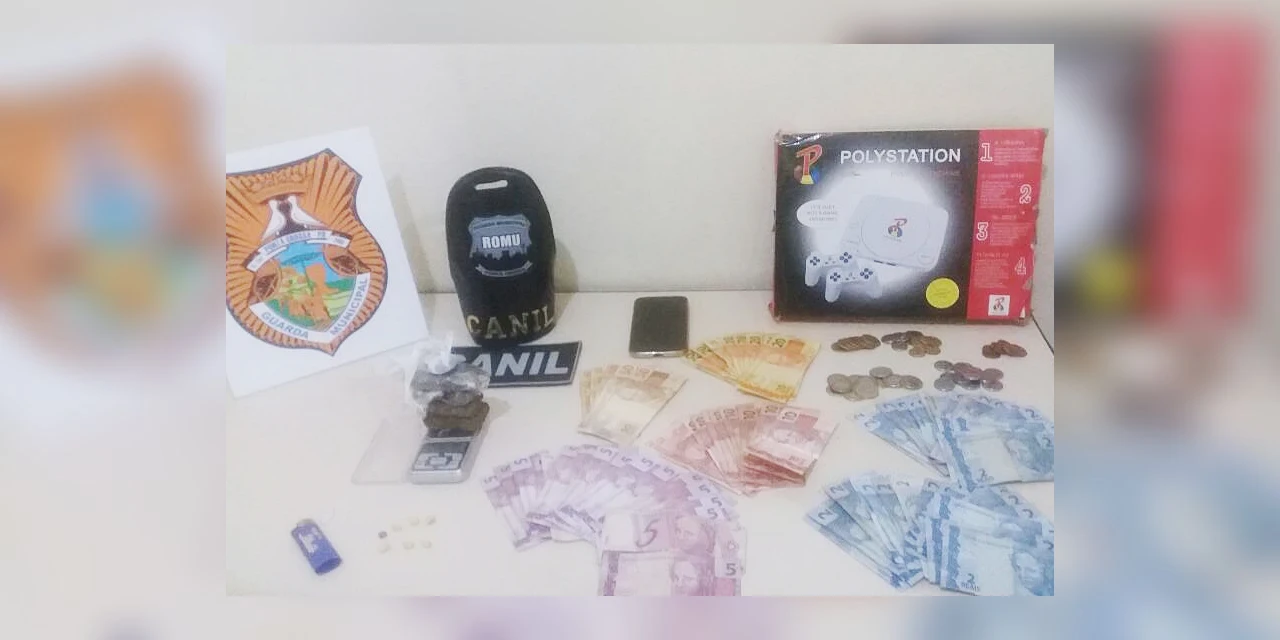 A equipe Romu/Canil da Guarda Municipal prendeu, na noite de ontem (15), um homem suspeito de tráfico de entorpecentes na região central. Os agentes chegaram até o cidadão através da Central de Monitoramento, que acompanhava as atividades do indivíduo e acionou a equipe Romu. Em decorrência da ação, foram apreendidos 86 gramas de maconha e 7 pedras de crack, além de um videogame e mais de oitocentos reais. Durante abordagem, os agentes também recuperam um celular que havia sido furtado no início do mês.
