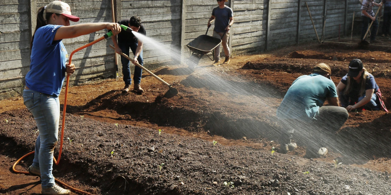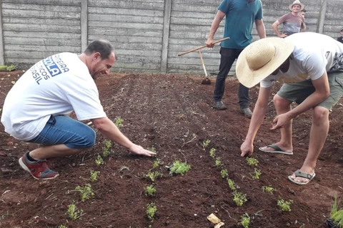Mais de 20 acadêmicos do curso de Agronomia da Unicesumar ficaram responsáveis pela horta. O terreno estava coberto por grama e mato e foi utilizado, além das enxadas e ferramentas, um equipamento agrícola emprestado pela instituição de ensino superior para preparar a terra e deixa-la pronta para o cultivo de legumes e hortaliças.