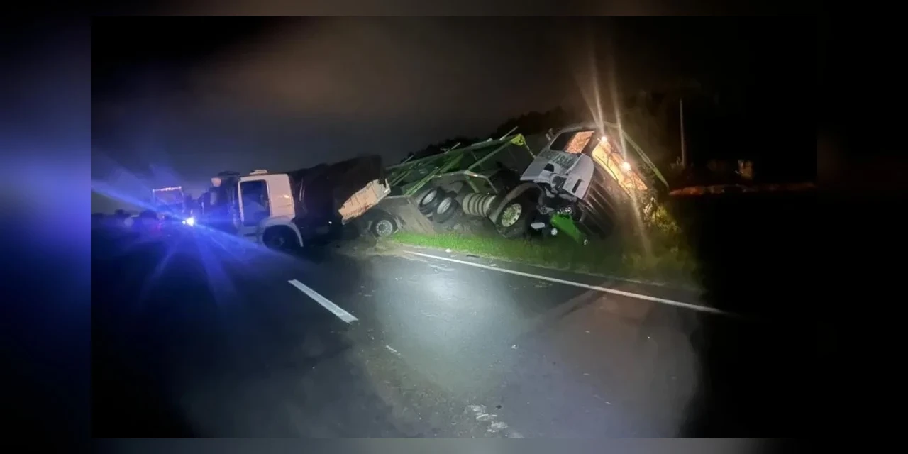 Conforme a Polícia Rodoviária Federal (PRF), o acidente envolveu dois caminhões que seguiam sentido Curitiba. Na altura do km 535, da BR-376, houve a colisão e uma carreta cegonha, carregada com outros veículos, tombou no canteiro central. A outra carreta envolvida fez um “L” na pista e bloqueou as faixas.