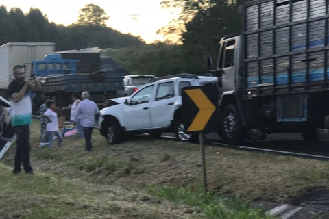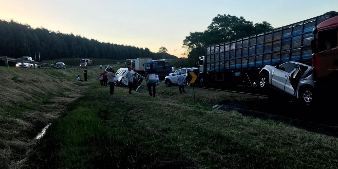 REDAÇÃO/Correio dos Campos - Na noite desta terça-feira (6), por volta das 20h, ocorreu um acidente envolvendo cinco veículos, um deles uma caminhonete Amarok que ficou esmagada entre dois caminhões. O engavetamento aconteceu no Km 521 da BR 376, nas proximidades do Parque Estadual de Vila Velha, causando congestionamento.