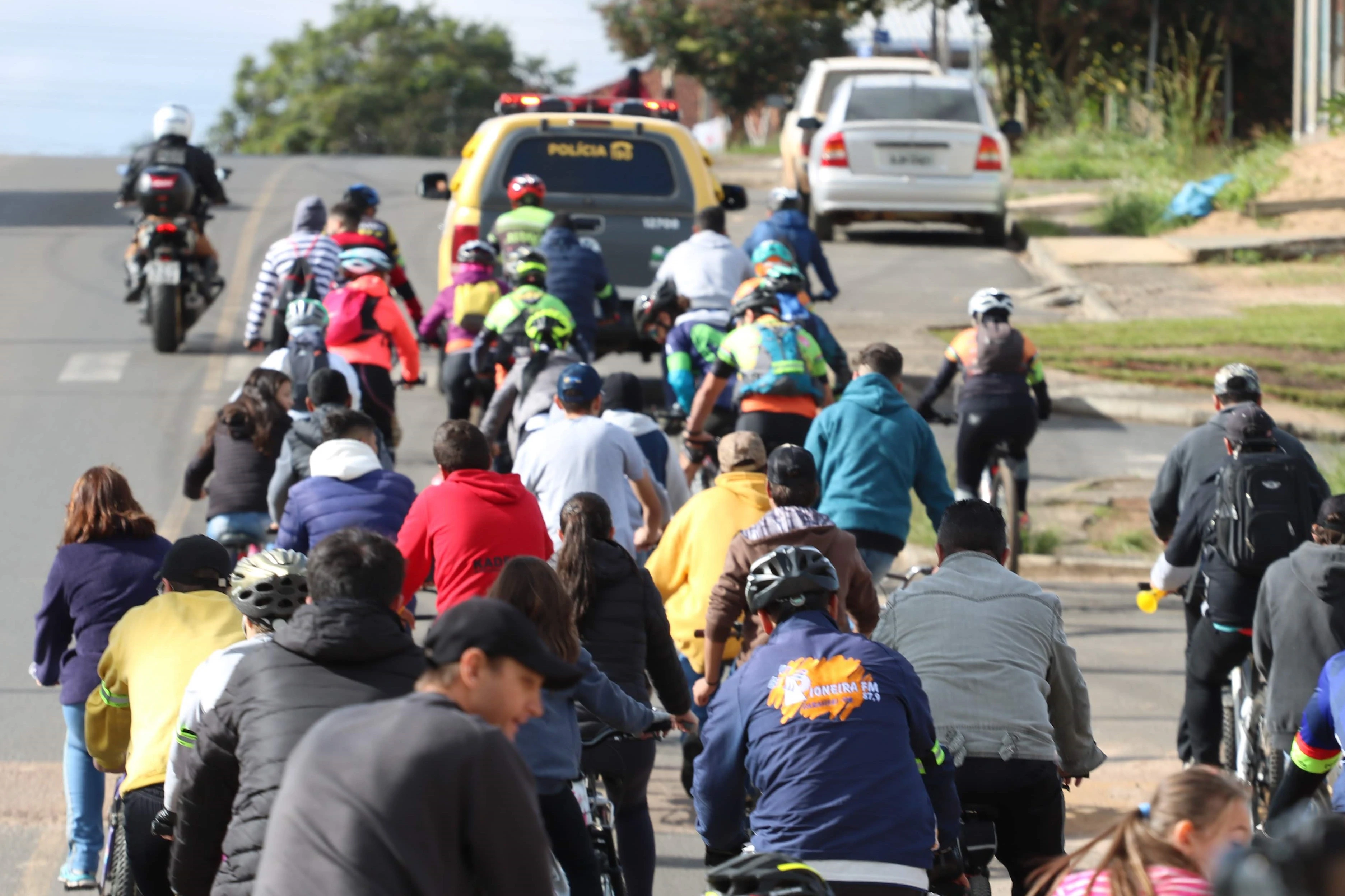 No último sábado (25), as ações aconteceram em Carambeí/PR. Um passeio desenvolvido em parceria com o DETRAN, com a Prefeitura Municipal, através da Secretaria de Esportes, e com a Defesa Civil, reuniu dezenas de ciclistas, que se concentraram na Praça Cívica e, em seguida, percorreram diversas ruas da cidade.