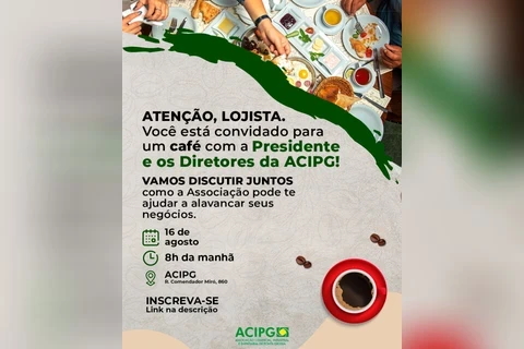 COM ASSESSORIAS - A ACIPG quer ouvir o comerciante. Quer saber dele quais os desafios, os problemas, as dores, e juntos discutir e encontrar soluções. Por isso, o comerciante tem um convite: na próxima terça-feira (16), às 8 horas, a Associação Comercial, Industrial e Empresarial de Ponta Grossa realiza um café da manhã para os lojistas da cidade, com a presença da presidente Giorgia Bin Bochenek e diretores da Associação.