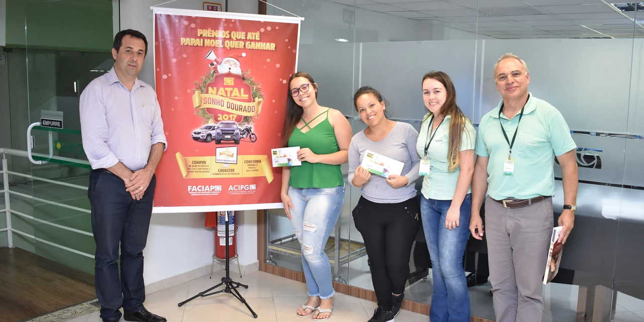 COM ASSESSORIAS - A Associação Comercial, Industrial e Empresarial de Ponta Grossa (Acipg) realizou na tarde desta segunda-feira (18), a entrega dos primeiros vales-compra da campanha Natal Sonho Dourado 2017, para a região de Ponta Grossa. O sorteio aconteceu no último dia 13 de dezembro. A campanha é uma promoção da ACIPG e da Federação das Associações Comerciais e Empresariais do Paraná (Faciap).