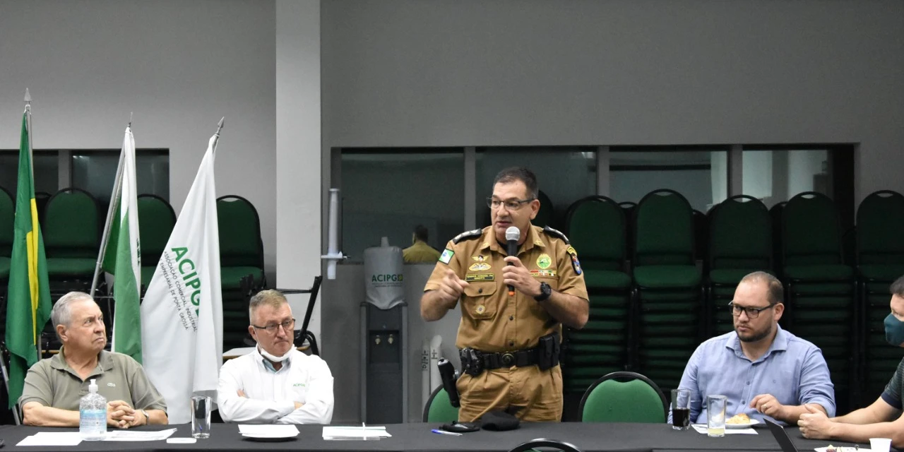 Na reunião da diretoria da ACIPG na última segunda-feira (14), o comandante da Polícia Militar do Paraná, tenente-coronel Marcos Ginotti Pires, esteve presente na sede da Associação, e na oportunidade os representantes da ACIPG aproveitaram para reconhecer o bom trabalho realizado pela PM.
