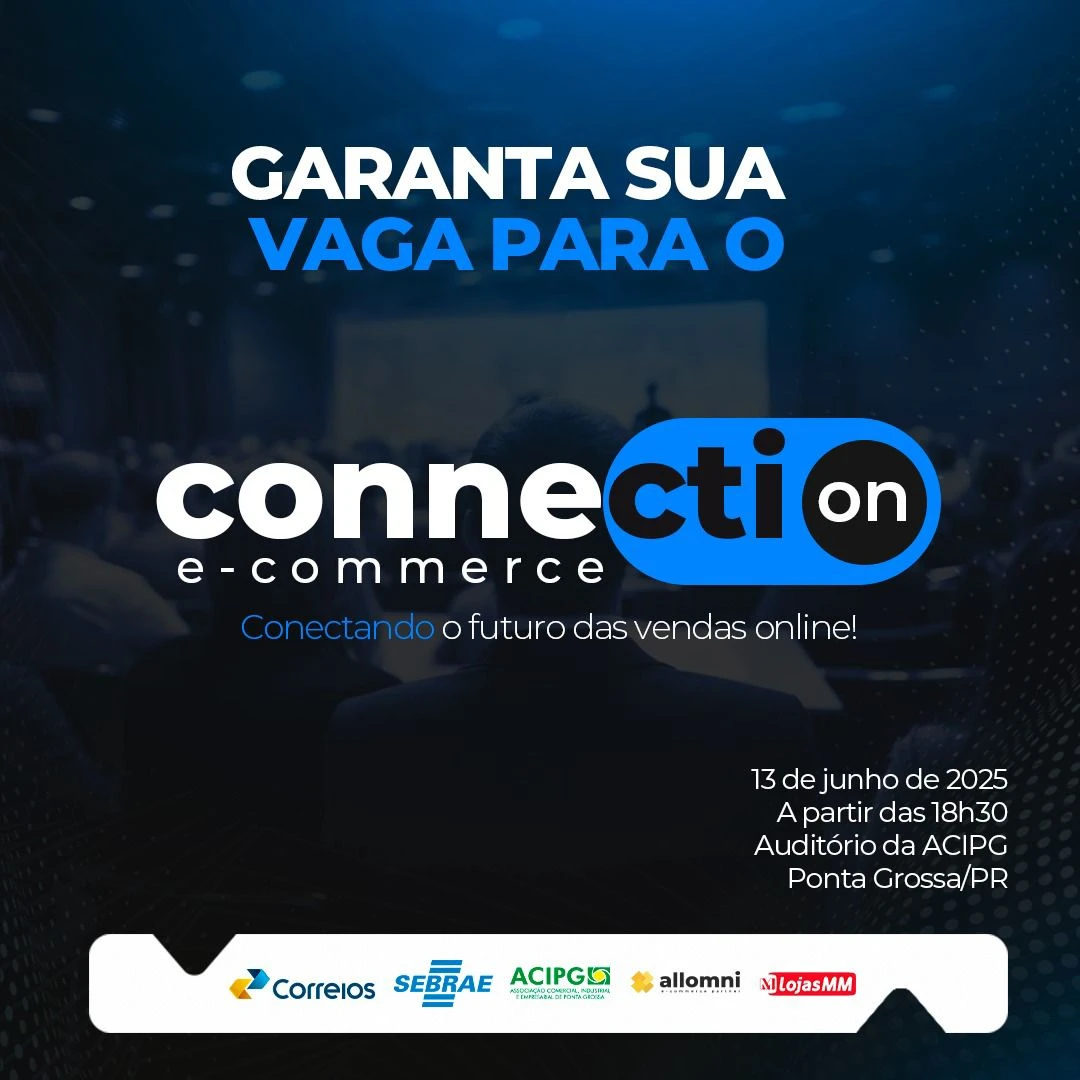 COM ASSESSORIAS - Na próxima sexta-feira, 13 de junho, às 18h30, o Auditório da ACIPG sediará o Connection E-commerce, um encontro estratégico para fomentar o comércio eletrônico na região. O evento reunirá representantes de Correios, Sebrae, Allomni, Lojas MM, Sindilojas e Vale dos Trilhos, além da própria Associação Comercial, Industrial e Empresarial de Ponta Grossa (ACIPG), que lidera a iniciativa. A programação inclui debates sobre soluções práticas e cases de sucesso, além do lançamento oficial da Câmara Setorial de E-commerce — um marco para o desenvolvimento do setor nos Campos Gerais.