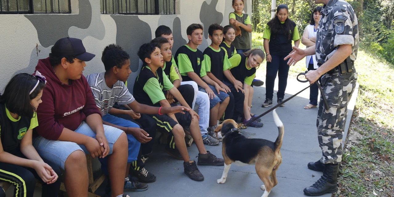 O encontro com a PM, solicitado pela instituição de ensino, teve por objetivo enriquecer o currículo educacional dos alunos.