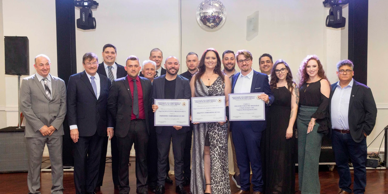 A cerimônia de premiação foi realizada durante o Jantar do Dia do Engenheiro e do Arquiteto, evento realizado no último sábado (10) na sede da AEAPG. Nesta edição, foram escolhidos como destaques o engenheiro civil Helenton Carlos da Silva, a arquiteta urbanista Renata Correia Degraf e a empresa MM Estruturas Pré-Moldadas.